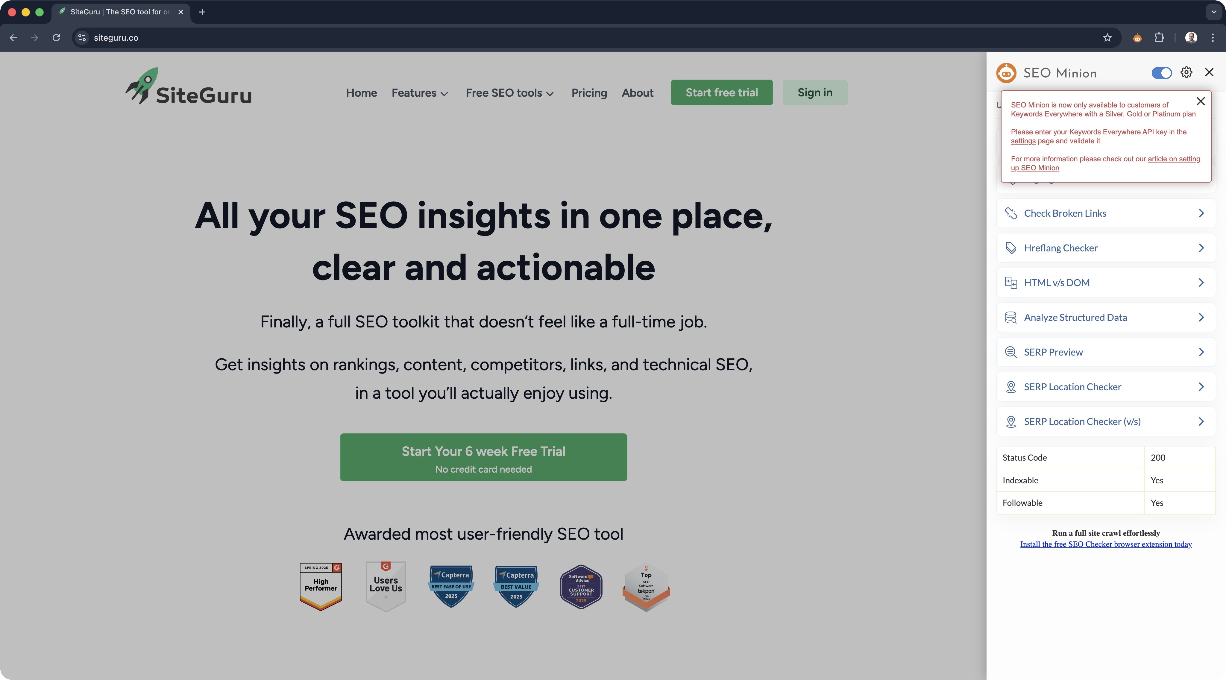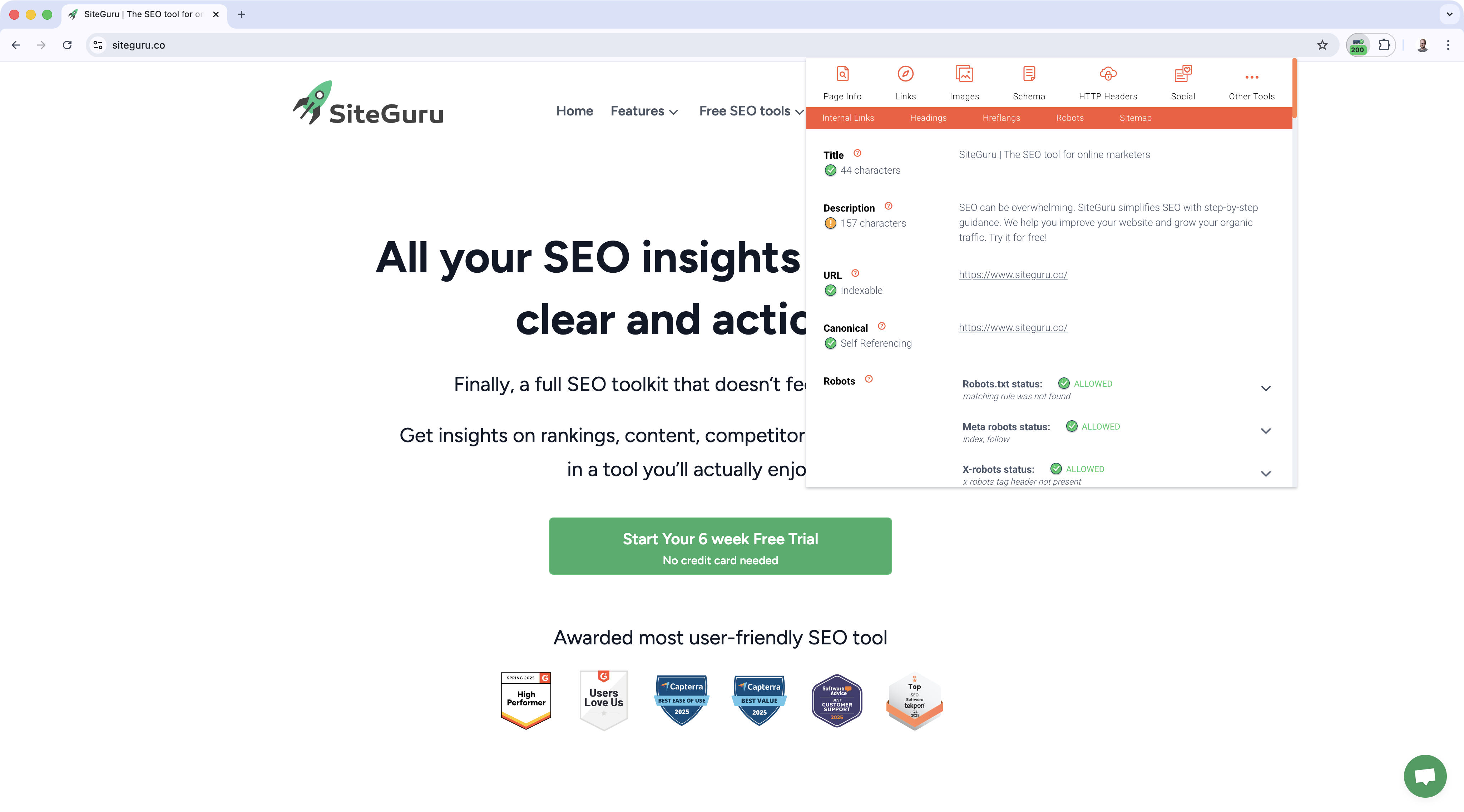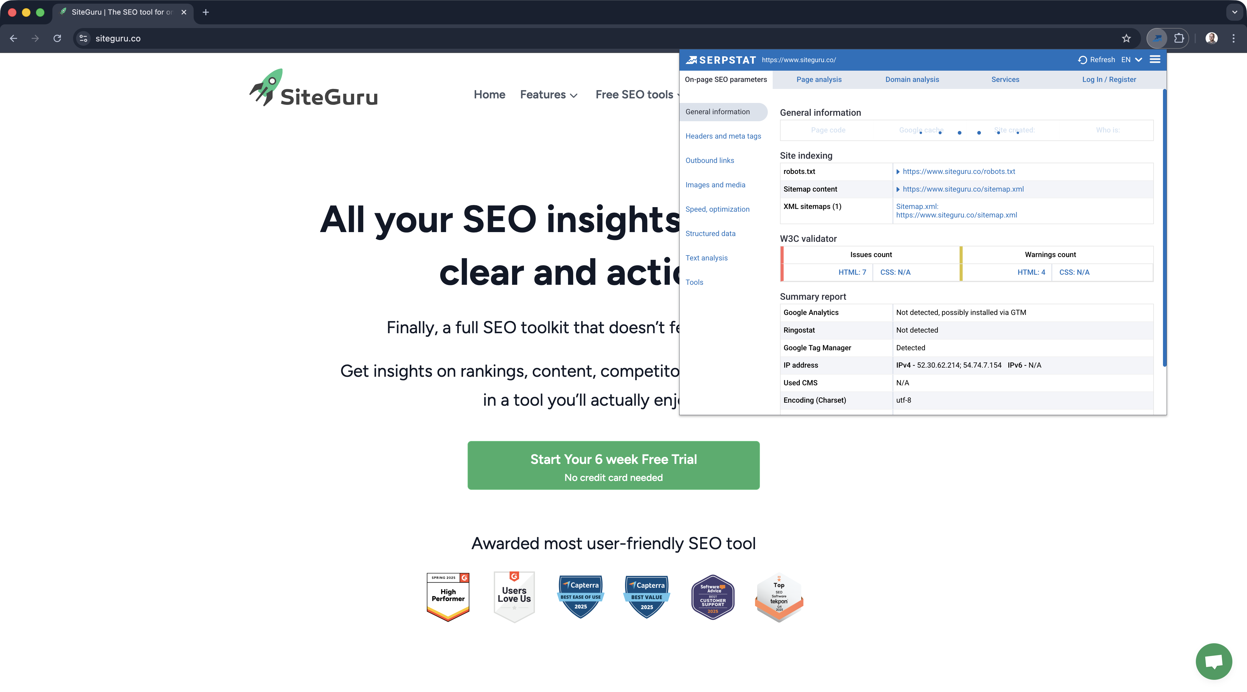 Best for: Comprehensive on-page analysis, technical SEO validation, and SERP insights